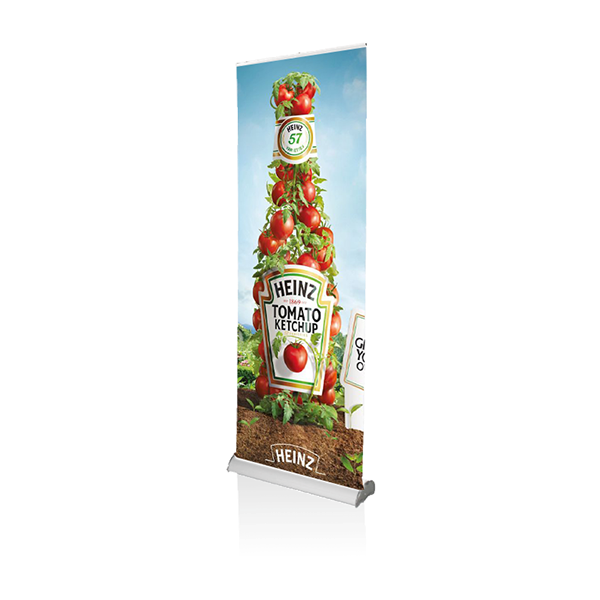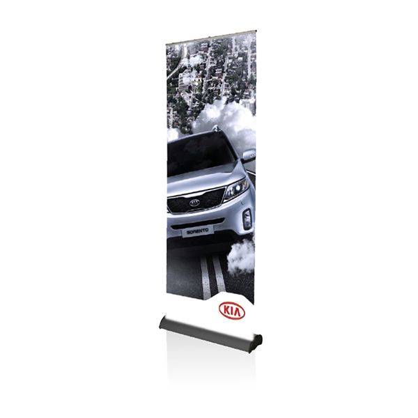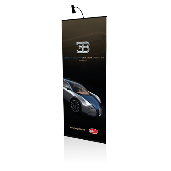 Konstrukce - aluminiová, ručně rolovací, grafický panel - banner, skládací tyč, tubus, taška